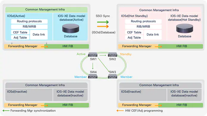 Reference site: www.cisco.com/c/en/us/td/docs/switches/lan/catalyst9400/software/release/16-6/configuration_guide/stck_mgr_ha/b_166_nsf_sso_9400_cg.html