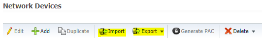 회사 업무를 하던 중, ISE의 Network Device 정보를 업데이트 할 일이 생겼다. ISE에서는 아래 그림과 같이 Import와 Export 기능을 제공한다.