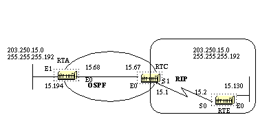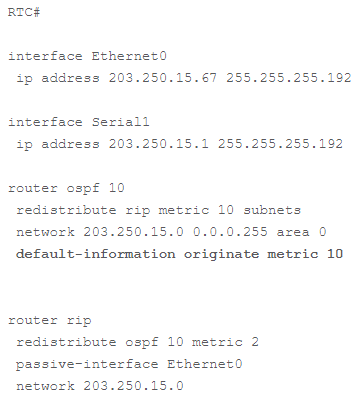 RTE가 default-route (0.0.0.0)을 RIP에 injecting한다고 가정해보자. RTC가 보기엔 203.250.15.2가 gateway of last resort이다. 하지만 RTC는 RTA로 해당 default 경로를 전파하지 않는다. 이를 위해서는 아래와 같이 컨피그 해주면 된다.