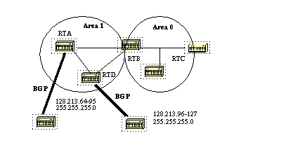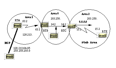 OSPF는 특정 area에 대해서 stub areas로 설정할 수 있다. External routes는 stub area로 flooding 될 수 없고 default summary route로 0.0.0.0이 설정되는 area이다. 아래 그림처럼 stub area는 하나의 exit point만 존재하거나 area 밖으로 나가는 routing path 중 optimal한 path를 선택하지 않아도 될 경우 설정한다. Stub area로 설정하게 되면 교환해야 할 database의 크기가 줄어드는 장점이 있다.